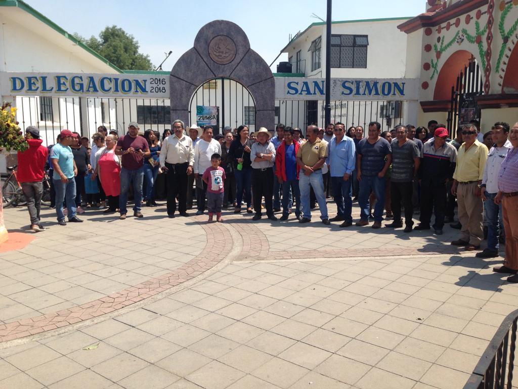Alrededor de un centenar de habitantes de la comunidad de San Simón se apostaron afuera de la Delegación Municipal para evitar que los delegados reconocidos por el Ayuntamiento de Texcoco, tomarán posesión del cargo e incluso evitar que la fuerza pública arribara al lugar para darle posesión a los nuevos delegados, ya que exigen «elecciones limpias que den legitimidad a las nuevas autoridades auxiliares».