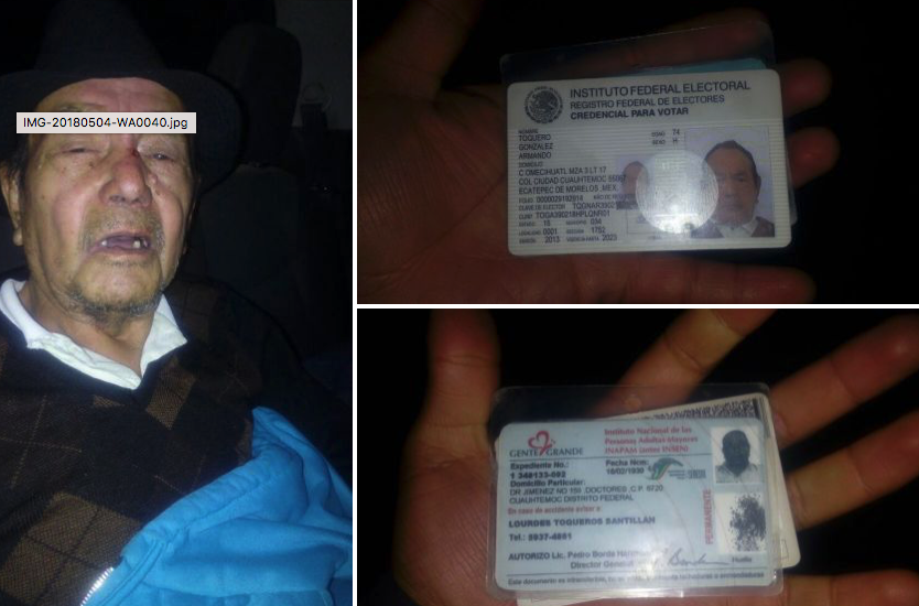 Un hombre de la tercera edad fue encontrado vagando a un costado de la carretera Lechería- Texcoco, quien se encontraba aturdido y solo mostró unas credenciales y un numero telefónico , pero al llamar dijeron no conocerlo.