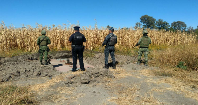 El hallazgo se registró por la irregularidad de la tierra, donde autoridades iniciaron con la remoción de maleza con lo que propició el descubrimiento del depósito de combustible, confirmaron autoridades mediante un comunicado.