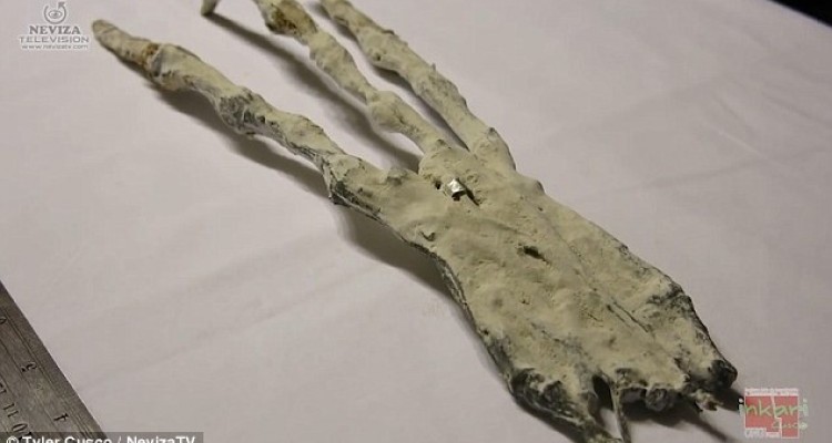 Un grupo de exploradores aseguran que encontraron el esqueleto de la mano de un ser de otro planeta, ya que se trata de una mano de tres largos dedos que no parece coincidir con alguna otra especie viva en la región.