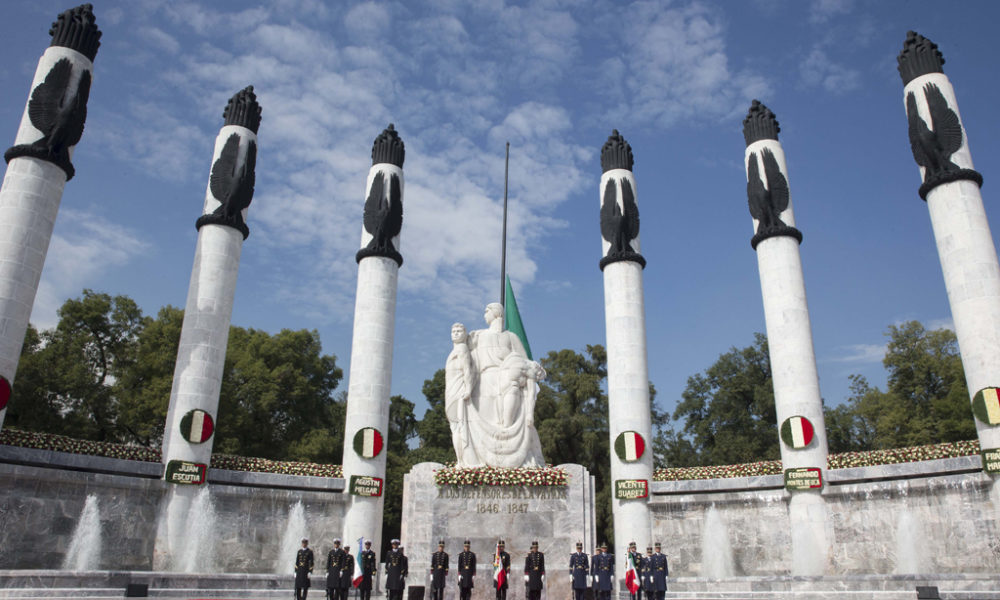 Al término de su intervención, una compañía de cadetes del Heroico Colegio Militar disparó una salva de fusilería para honrar la memoria de los Niños Héroes.