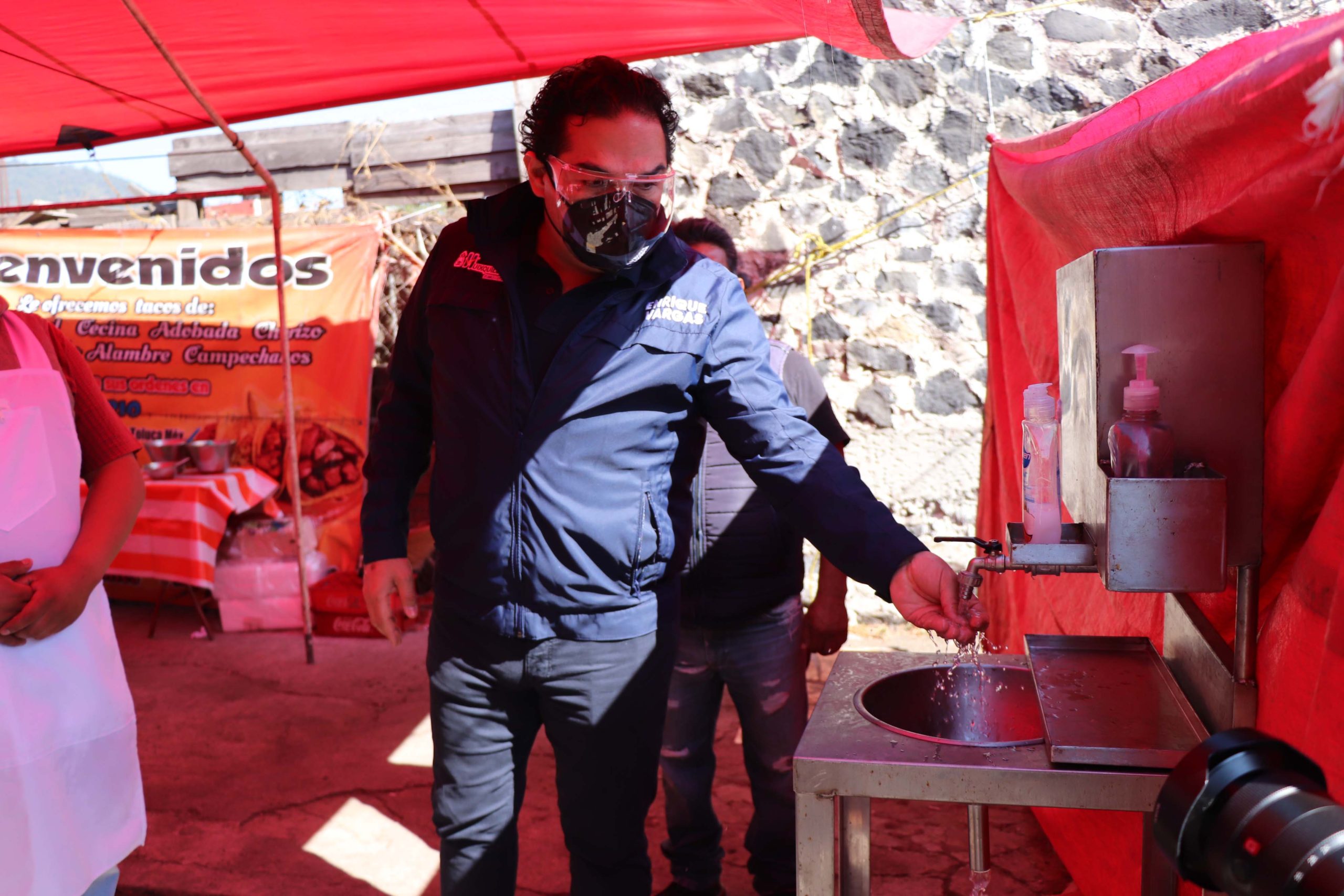 Durante este recorrido, el Edil visitó los puestos del mercado y verificó si cumplían con las barreras de protección como es el emplaye para evitar el contacto. También se pudo observar que todos tenían gel antibacterial para los clientes, eran atendidos por personal con cubrebocas, además de la instalación de 3 módulos para lavado de manos.
