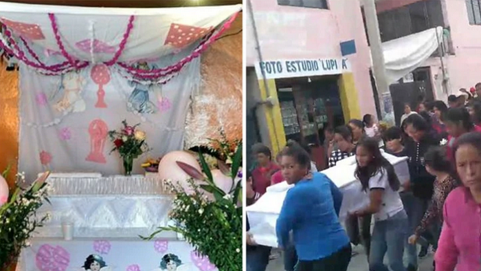 Habitantes salían de su casa para ver pasar el pequeño ataúd blanco, el cual fue cargado por seis mujeres jóvenes desde la parroquia hasta el panteón de la comunidad donde fue sepultado.