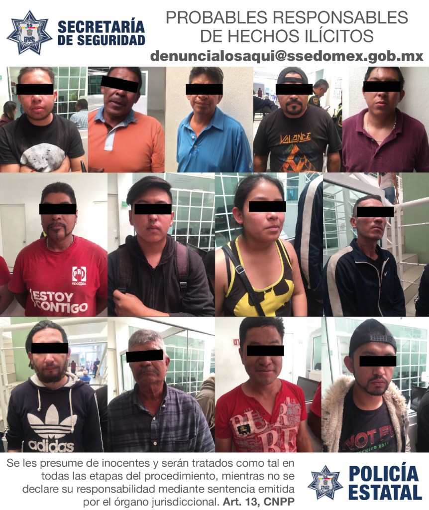 El resto de los detenidos son Carlos Eduardo “N”, de 30 años; Eduardo “N”, de 34 años; Blanca Edith “N”, de 20 años; Mario Alberto “N”, de 43 años; Bartolo “N”, de 63 años, y Eduardo “N” de 38 años de edad.