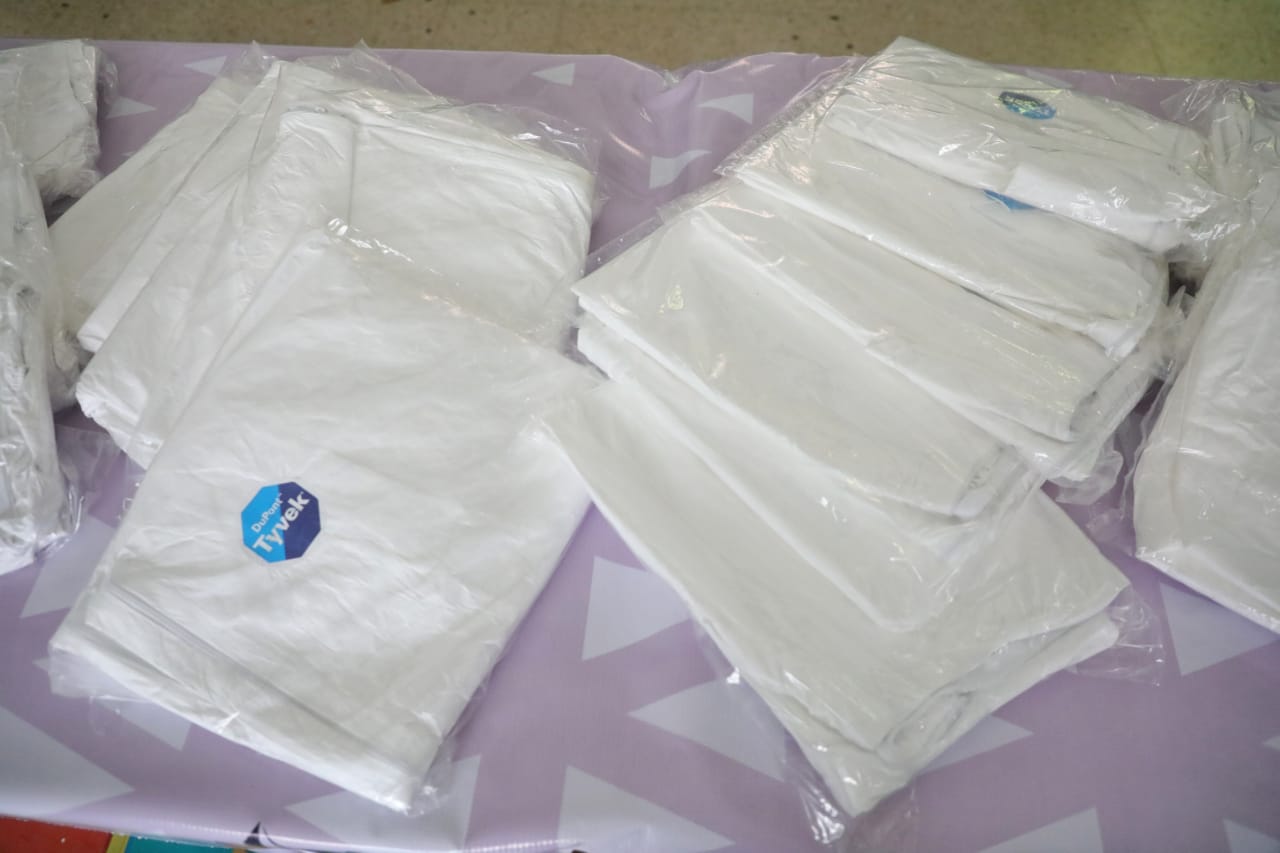 La donación consiste en mil 600 trajes Tyvek, prendas de protección de alta impermeabilidad contra sustancias químicas presentes bajo la forma de partículas aéreas sueltas; 400 lentes de seguridad con armazón de nylon y varilla retráctil; 6 mil mascarillas KN95, con capacidad de filtrado de partículas hasta del 95 por ciento; así como 10 mil botellas de 500 ml de agua para el consumo del personal médico.