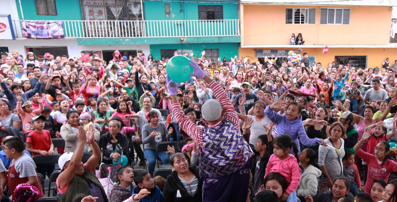 En un ambiente de convivencia familiar, más de 800 personas se congregaron en la explanada del mercado Alfredo V. Bonfil, donde payasos ofrecieron horas de diversión a familias enteras.