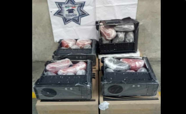 Agentes de la División de Fuerzas Federales de la Policía Federal con apoyo de binomios caninos adiestrados en la detección de narcóticos, aseguraron en una empresa de mensajería en el Estado de México, cerca de 30 kilos de marihuana ocultos dentro de cuatro gabinetes CPU de computadora.