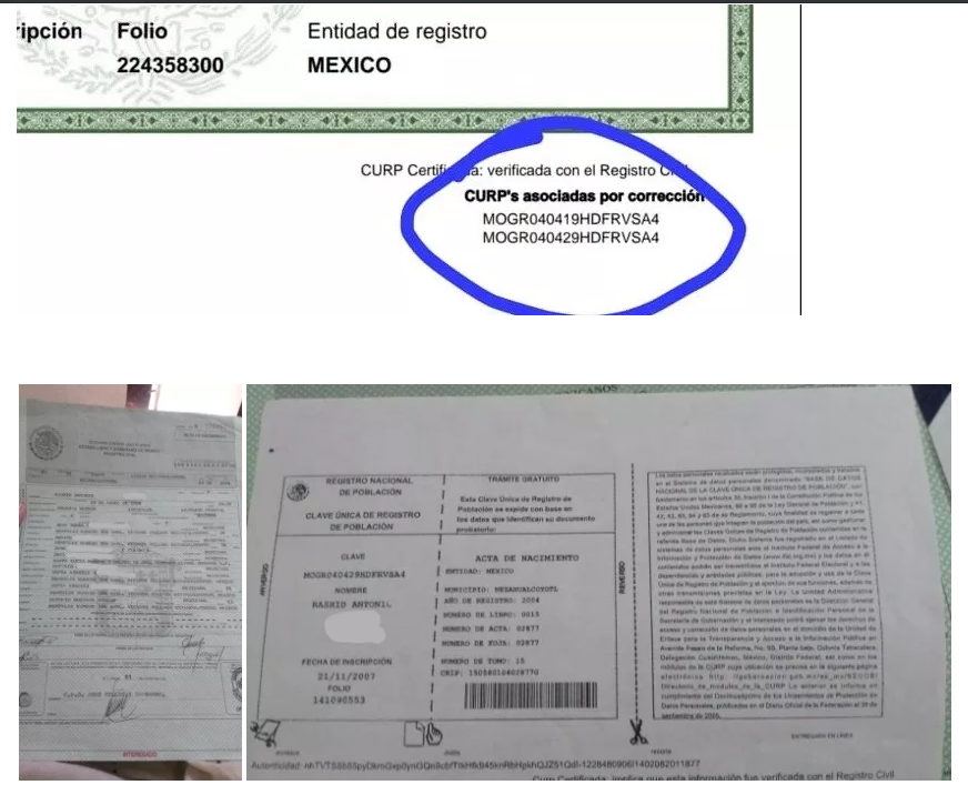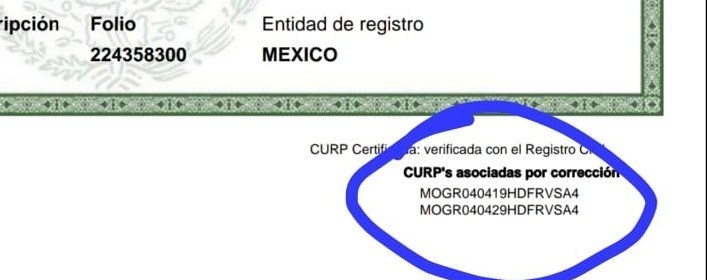 Ahora están acudiendo al RENAPO, para realizar la corrección a la CURP de su hijo, porque además aparece en la parte de abajo a leyenda que indica que hay otras CURP relacionadas.