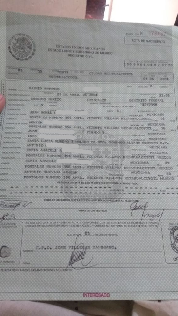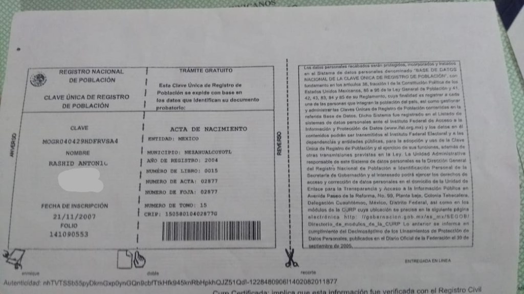 La madre de Rashif, señaló que el acta de nacimiento que se imprimió en el sistema, también aparecía con error, por lo que al detectarlos acudieron para realizar la corrección.