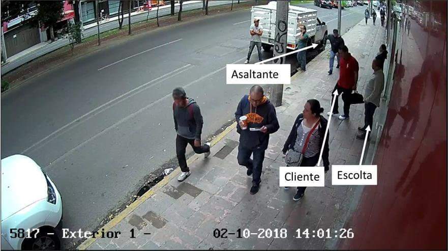 Posteriormente el cuentahabiente y el escolta abordaron una camioneta y se fueron del lugar.