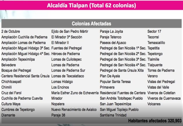 Aquí la lista de todas las colonias que no tendrán servicio; en las alcaldías de Miguel Hidalgo, Cuauhtémoc, Cuajimalpa y Álvaro Obregón el corte será al cien por ciento.