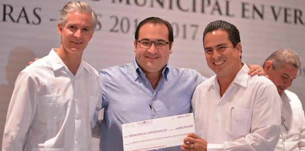 El gobernador Javier Duarte de Ochoa y el director general del Banco Nacional de Obras y Servicios Públicos (Banobras), Alfredo del Mazo Maza, entregaron 794 millones de pesos a 45 municipios para que construyan obras de infraestructura que mejorarán la calidad de vida de sus habitantes.