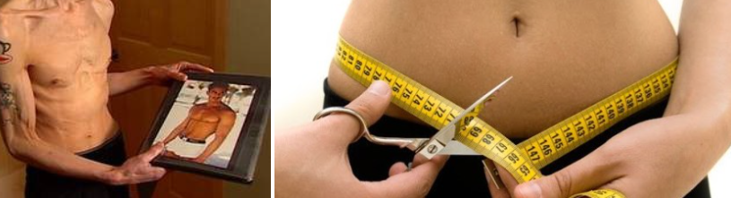 Además, la imagen de una esbeltez distorsionada puede mostrar a mujeres muy delgadas, quejándose de un supuesto exceso de peso o talla.