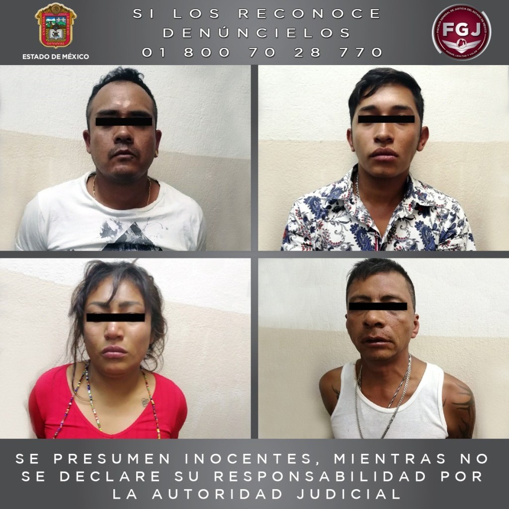 María Guadalupe “N”, Óscar “N”, Gerardo Israel “N” y Alberto “N” fueron detenidos por la policía municipal de Naucalpan, después de haber cometido el probable delito.