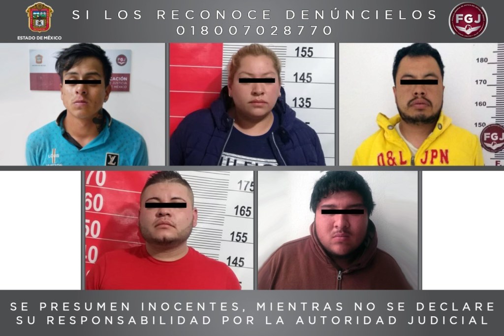 Se trata de Marco Alexis “N”, Marco Antonio “N”, Christian “N”, Lesvia “N”, y Jesús Rogelio “N”, quienes fueron asegurados mediante operativos implementados en los municipios de Cuautitlán Izcalli, Tequixquiac, La Paz y Zumpango.