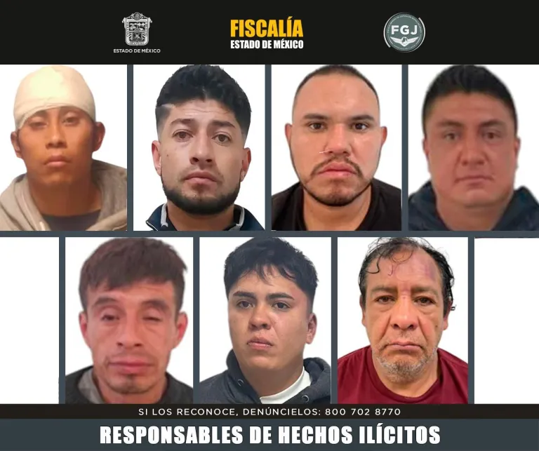 La Fiscalía General de Justicia del Estado de México (FGJEM) obtuvo sentencia de condena para siete individuos, tras acreditar su intervención en los delitos de robos de vehículo con violencia, robo con violencia y robo cometido en medios de transporte público de pasajeros, ilícitos perpetrados en los municipios de Tlalnepantla, Toluca y Chimalhuacán.