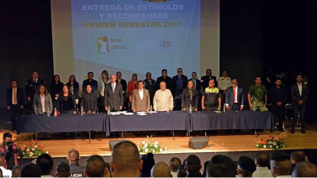 Estado de México.- En Nezahualcóyotl, el presidente municipal Juan Hugo de la Rosa García, luego de entregar 5 millones de pesos en estímulos a policías municipales que destacaron en el desempeño de sus funciones durante el último semestre, hizo público que con la finalidad de fortalecer a la dirección de Seguridad Ciudadana y mejorar el actuar de sus policías, por medio de encuestas, los ciudadanos de la localidad evaluarán el trabajo realizan.