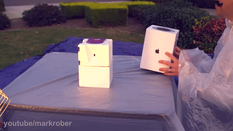 El ahora youtuber diseñó una bomba de diamantina y olor escondida en una caja de HomePod, la cual se activa al abrir la tapa.