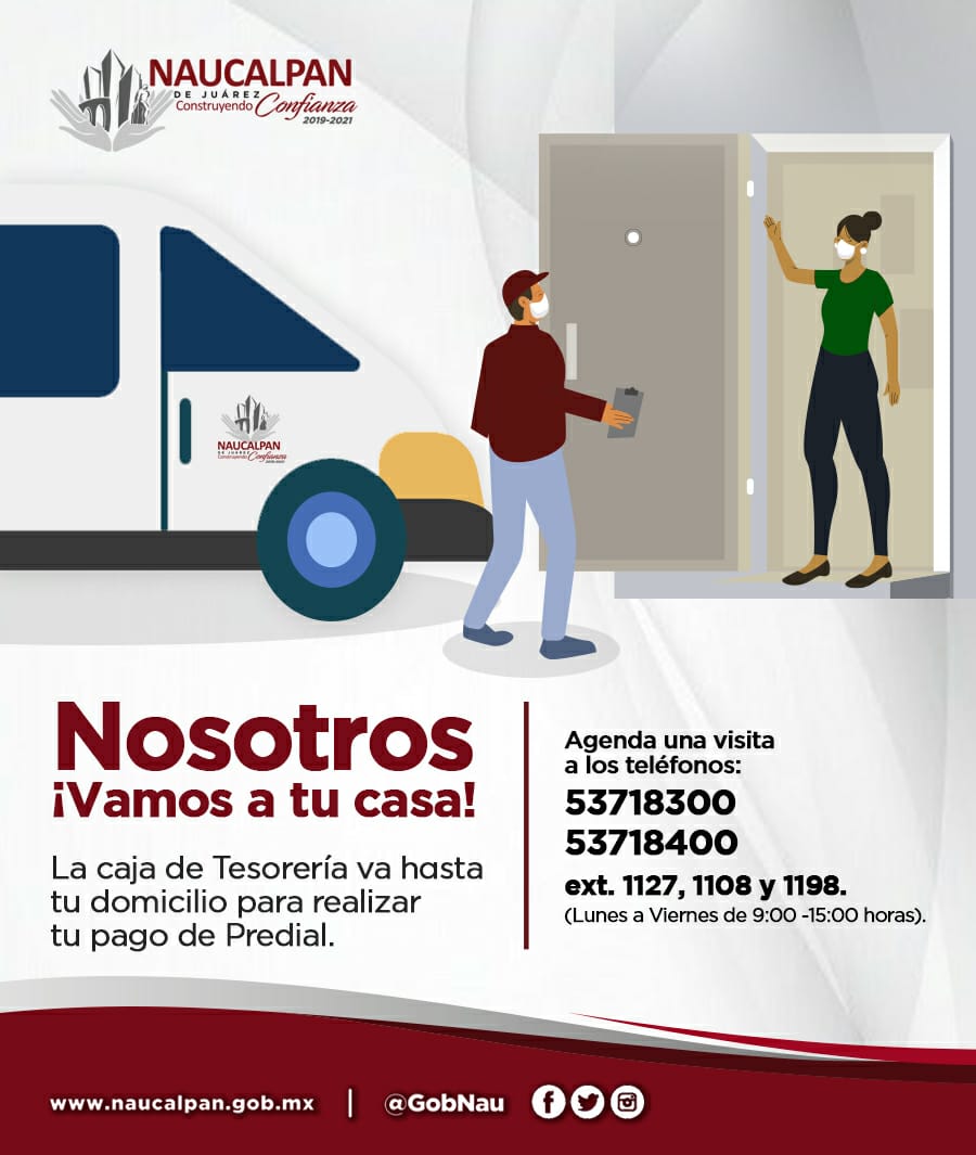 El Gobierno de Naucalpan reforzó el cobro a domicilio del impuesto predial, lo que beneficia a personas con movilidad reducida y grupos vulnerables, a fin de protegerlos de posibles contagios de COVID-19 ante el semáforo epidemiológico rojo vigente en la entidad.