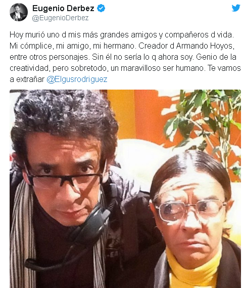 Eugenio Derbez, con quien trabajó durante años, fue el encargado de anunciar su deceso en redes sociales. “Hoy murió uno de mis más grandes amigos y compañeros de vida. Mi cómplice, mi amigo, mi hermano. Creador de Armando Hoyos, entre otros personajes.