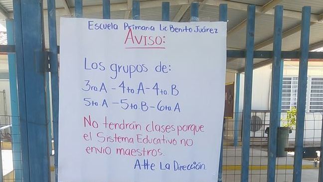 Tal es el caso de la Escuela Primaria Benito Juárez, en el Ejido Oaxaca, quien presenta un faltante de 6 maestros para mismo número de grupos y la falla de 4 aparatos de A/C.