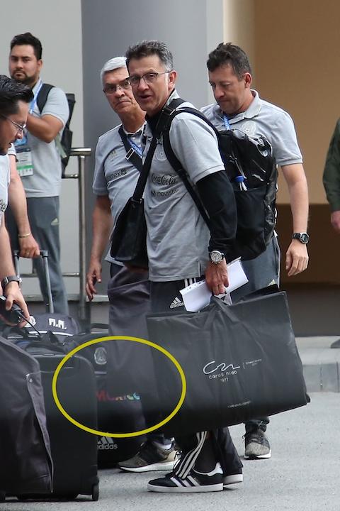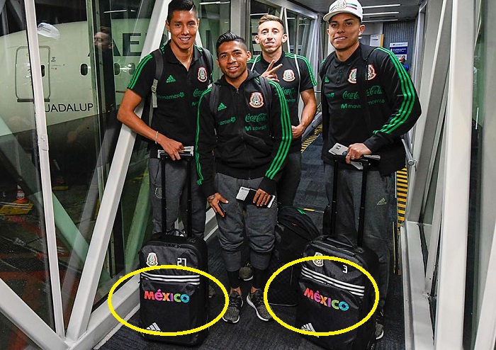 En las maletas de viaje se utilizó la palabra México, y para ello en otro de los tuits semanales del CPTM en la cuenta de la Selección Nacional se colocó una fotografía en un aeropuerto donde cuatro futbolistas lucen el equipaje.