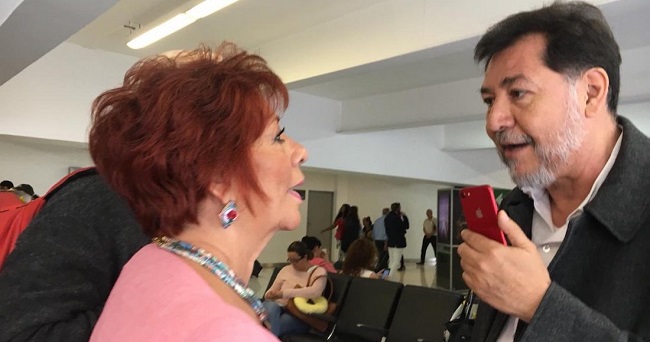 La mujer dijo que el calificativo era pertinente para el Diputado del PT por ser “compañero del señor Peje” mientras avanzaban en la fila para subir al avión.