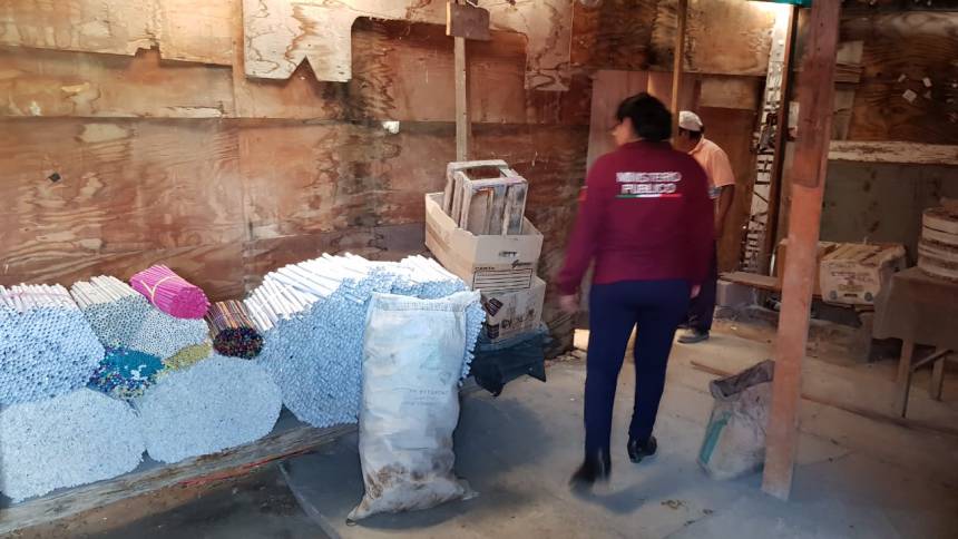 Agentes de la Fiscalía General de Justicia del Estado de México (FGJEM) localizaron un taller que no contaba con las medidas de seguridad para el manejo de pólvora y materiales propios de la industria pirotécnica.