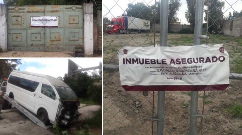 El primer cateo fue realizado en un inmueble ubicado en la carretera México-Puebla, en la colonia San Antonio Tlalpizahuac, en el municipio de Ixtapaluca, donde personal de esta Institución ingresó al sitio en donde fue encontrado un vehículo desvalijado marca Toyota, y otra unidad automotora de la misma marca, la cual no tenía medios de identificación.
