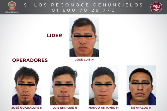 De los cinco secuestradores, se dio a conocer que cuatro de ellos son habitantes de Naucalpan y el otro de Huixquilucan, este último es el jefe de la banda que opera principalmente en la cabecera municipal.
