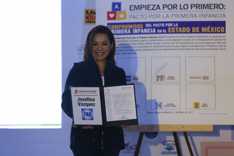 Josefina Vázquez Mota, candidata del PAN a la gubernatura, firmó el Pacto por la Primera Infancia en el Estado de México, respaldado por más de 135 asociaciones, con el que además de comprometerse a apoyar los 10 puntos centrales, también ofreció capacitar a médicos generales y pasantes sobre la lactancia, a propósito del pronunciamiento de la UNICEF, de que “no hay nada como tener el mejor comienzo de vida”, y que la lactancia materna debe verse de forma natural.