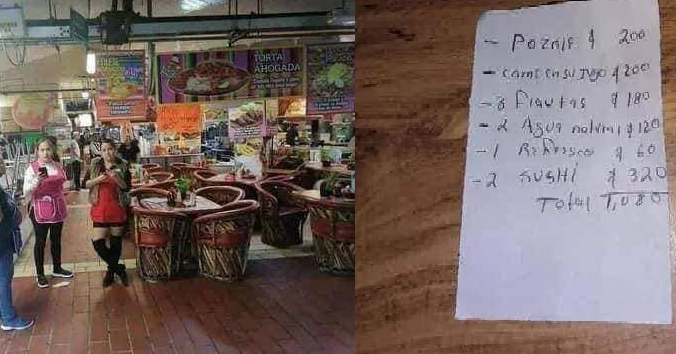 Finalmente por respeto y educación, ya que estaban sus hijas, pago todo, pero la cuenta llegó a los mil 80 pesos. Hecho que sin duda dejó boquiabierta a la denunciante, pues no se trataba de ningún restaurante de lujo.