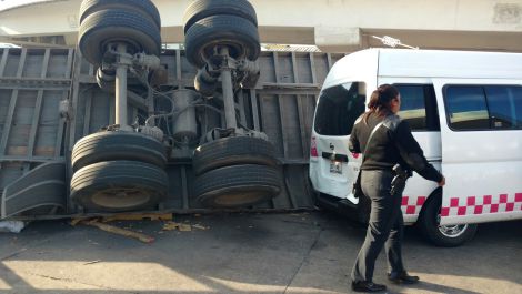 El conductor de un trailer que transportaba pesada carga, no pudo controlar la unidad cuanto se encontró con una curva del distribuidor vial José María Morelos (y la 30-30) y se precipita al vacío.