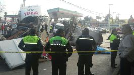 La cabina y la caja del trailer quedaron destrozadas, muriendo en su interior el chofer, cuyo nombre aún se ignora.