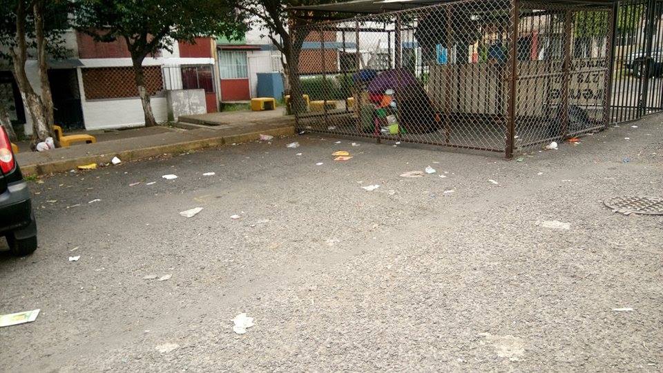 Tenemos que buscarlos para suban y muchos hasta groseros son, dicen que porque unos no les dan para el refresco, otros que porque Pedro Rodriguez no les da para el diesel, pretextos y más pretextos, el caso es que muchos de los vecinos son sucios e inconscientes y tiran las bolsas o cascajo por todos lados ahora tanto en la parte de adelante como en la parte trasera se encuentra de esta manera.