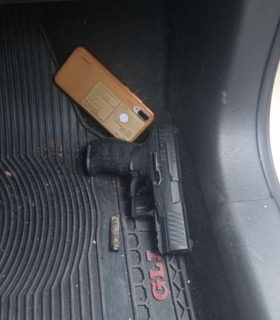 Tras una revisión, policías encontraron un arma de fuego y una arma punzo cortante entre las pertenencias de los presuntos responsables del robo.