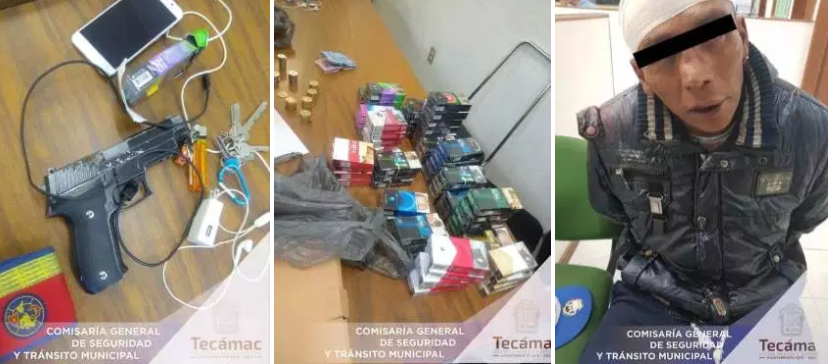 En su intento de escape fue detenido metros adelante, encontrándole en una bolsa tipo mariconera color negra una réplica de pistola de plástico color negro.