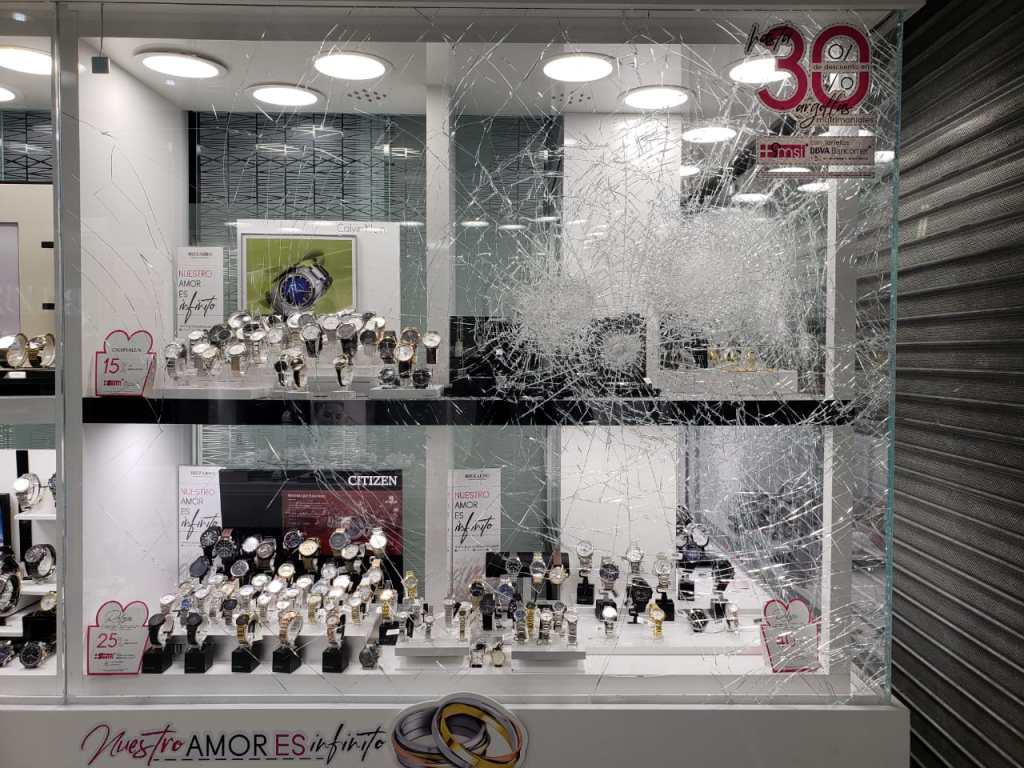 Ante la situación de emergencia, un empleado activó la alarma, por lo que los sospechosos intentaron romper los cristales de las vitrinas para sustraer las mercancías y al no conseguirlo, huyeron.