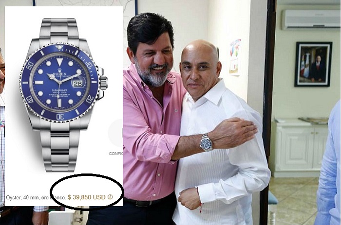 En contraste, el mandatario estatal ha exhibido en actos públicos relojes de marcas exclusivas como Omega y Tag Heuer, con precios que van de los 80 mil a 100 mil pesos. Y ahora su jefe de oficina presume un Rolex.