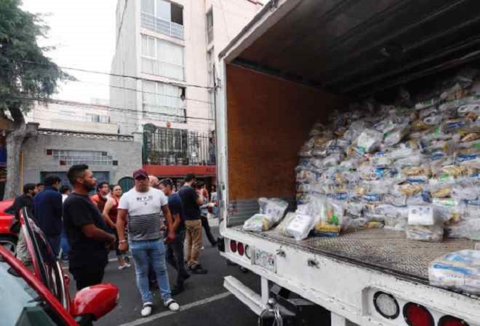 Vecinos de la colonia Portales grabaron el momento y a través de redes sociales difundieron el video en el que se observa que la parte trasera de la camioneta oficial está repleta de despensas, además de que varias personas golpearon a un vecino que vio cómo bajaban la mercancía a una casa cercana.