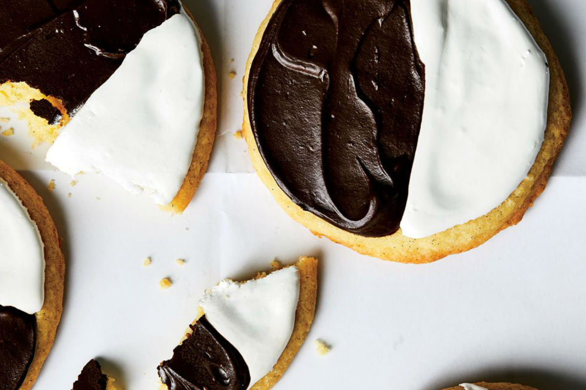 En Freedman’s en Los Ángeles, la mejor nueva chef, Liz Johnson, trata la tradición como una sugerencia y le da un enfoque que la libera unas finas creaciones, con un toque nostálgico a su versión de una galleta en blanco y negro, con azúcar y vainilla, suave y tierna. Con una sola mordida, resuelve cada promesa rota de cada galleta blanco y negro que conocíamos antes, recordándonos que en manos de un verdadero técnico, las reliquias tienen mucho por dar. El tiempo total para estas galletas, incluye una espera de una noche que les permite suavizarse hasta tener la textura perfecta.