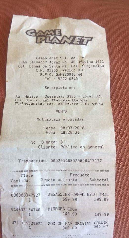 En cuanto compraban los juegos y me dijeron que en $250 pesos precio que me pareciion una burla yq que en el ticket el costo fue de $1,100 revise la pagina “http://gameplanet.com/politicas-y-restricciones“y en efecto la garantia no se hace valida en ninguna compra si NUNCA HA SIDO ABIERTO algo que se me hace ridiculo principlamente cuando son juegos usados