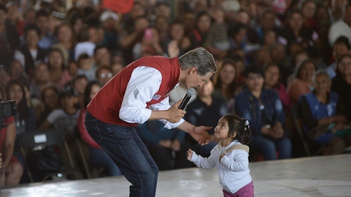 El día de ayer, como parte de su campaña en el EdoMex, el priista visitó el municipio de Ecatepec para realizar un mitin. Allí llegó a bordo del teleférico Mexicable, desde la estación de Santa Clara a Fátima. Cuando bajó del transporte ya lo esperaban decenas de ‘acarreados’ y gente pagada para darle la bienvenida. Posteriormente, fue llevado a bordo de una camioneta al Deportivo Bicentenario, en la colonia Carlos Hank González.