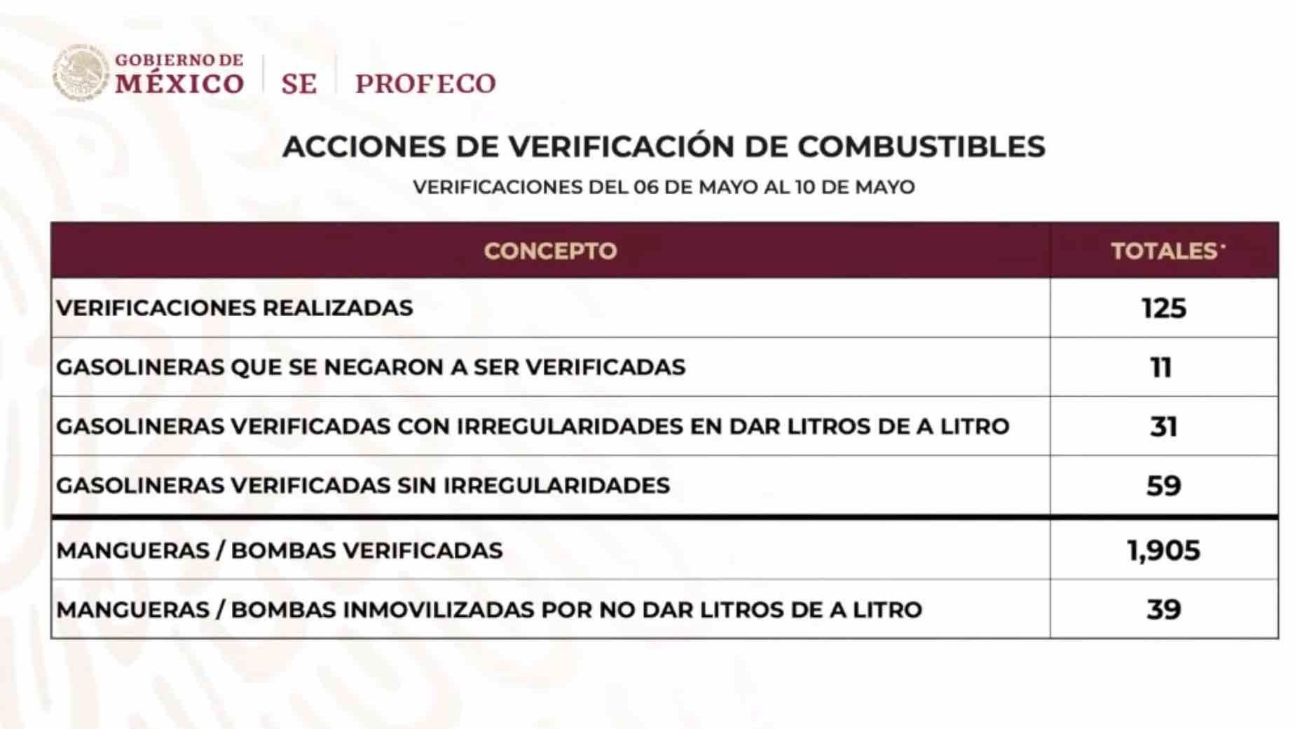De las mil 905 bombas que verificó Profeco en todos el país, 11 no se dejaron verificar y 39 bombas fueron inmovilizadas.
