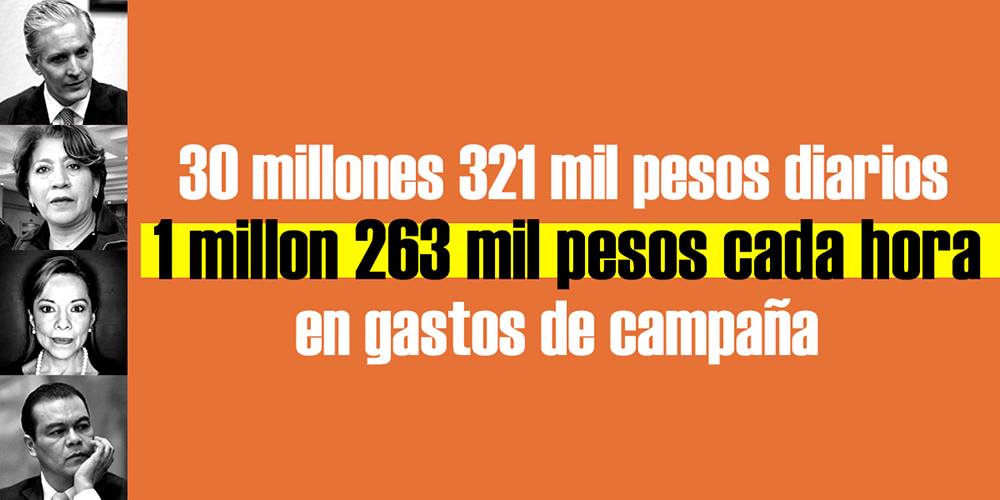 Aquí se muestra un gasto de los candidatos por 203 millones 962 mil 575 pesos, lo que significa que, en 3 días. los aspirantes a la gubernatura mexiquense gastaron 90 millones 964 mil 120 pesos.