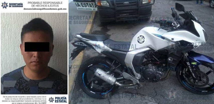 El presunto responsable, junto con otros dos sujetos, fueron sorprendidos en flagrancia cuando despojaban con violencia a una persona de una motocicleta Yamaha con matrícula del Estado de México; dos de los implicados huyeron a bordo de una camioneta, en tanto que el detenido, intentó fugarse con vehículo hurtado.