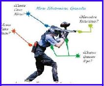 Pistolas que funcionan con válvulas de Presión y mangueras que hacen que las cápsulas de pintura salgan disparadas.