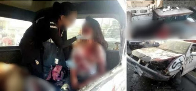 Por el fuerte impacto que recibió el transporte público del auto que le cayó encima, murió una mujer de unos 40 años de edad, dos más quedaron graves y otros 8 fueron atendidos por lesiones en diferentes partes del cuerpo.