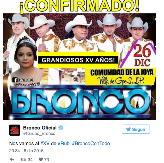 A días de que Ruby celebre a lo grande sus XV años, celebridades se han autoinvitado, tal es el caso de Larry Hernández, el “Komander”, Andrea Legarreta, Galilea Montijo, Alex Kaffie y ahora el grupo Bronco.