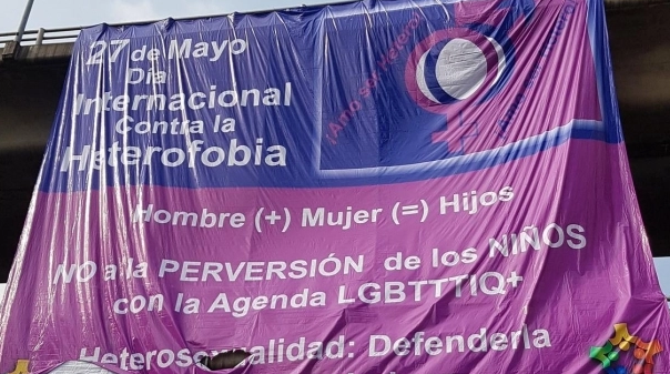 Con esta premisa, la organización promueve el hashtag #AmoSerHetero en carteles que circulan en internet, pero lo que más ha sorprendido a la gente es que en un puente vehicular, de la Ciudad de México, colgaron una manta de varios metros de largo en la que puede leerse “No a la perversión de los niños con la agenda LGBTTTIQ+”.